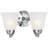 This 13.5" x 8" Basix Wall Sconce/Bath Vanity is crafted durably with Steel and Glass materials. The light fixture uses 2 E26 Medium light bulbs, and features a Frosted glass shade. With a damp safety rating, this fixture is safe for high-humidity locations like bathrooms or any other space inside your home.