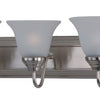 With the classically beveled details on the frame and light fixture base, the 5-Light Essentials - 801X Vanity Light is at home in a classic bathroom. Matching the satin nickel finish with your faucets and vanity hardware and makes for an very sophisticated vanity. And the frosted glass shades go well with a quartz, marble, or granite countertop.