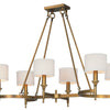 Add a touch of vintage or transitional glamor to your home with the Fairmont 6-light chandelier. Steel columns and wide brass ribbons hold six lights aloft on this single-tier chandelier. Each cylindrical stem has classic conical details, designed to highlight the shiny and luxurious quality of the natural aged brass finish. Each bulb is housed under plain fabric shades, to diffuse the right amount of light throughout any room.