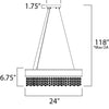 This 24" x 6.75" Mystic Single Pendant has an adjustable hanging height of 12" - 118". Designed with stunning crystals it is sure to draw eyes and add amazing effects to the light. Sixteen integrated LED lights provide long-lasting light. With a dry safety rating, this light fixture would go great in a kitchen or other low-humidity living areas in your home.