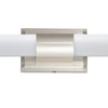 Cylinders of White cased glass are mounted onto a cast aluminum frame of Satin Nickel or Polished Chrome. LED modules evenly illuminate and provide soft yet ample illumination. Multi volt input is standard which allows for installation into commercial applications.