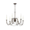 Sweeping metal accents links create classic curves on a minimalist chandelier. Available in hand-rubbed Chestnut Bronze or elegant Gold Leaf finishes. This look humbly evokes French Country charm and enchants any room it illuminates.