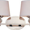 This 16.75" x 8.25" Rondo Vanity Lighting/Wall Sconce is crafted durably with Steel, Fabric, and Glass and Acrylic materials. The light fixture uses 2 E12 Candelabra Incandescent light bulbs, and features a White glass shade. With a damp safety rating, this fixture is safe for high-humidity locations like bathrooms or any other space inside your home.