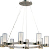 The first chandeliers during the medieval era had large wood rings holding large candles. This shape has remained popular because it's effective. And with the 8-Light Silo Chandelier, this ring shape is made new, featuring a polished chrome frame with a shade made of clear glass with a frosted interior, concealing the G9 Xenon bulbs. And while the simple shades revision the shape of a large candle, a clear glass bottom produces downward lighting in addition to upward lighting. The impact is a chandelier that provides both mood lighting softened by the shades and functional lighting.