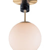 Inspired by both Mid Century Modern and Scandinavian Contemporary this collection spans a large breadth of today's interior design. Straight tubing finished in Satin Brass supports hand blown Satin White cased glass globes. Black accents of metal and Black marble add dramatic detail and upscale appeal.