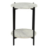 A modest piece of living room décor, The Melanie accent table features slabs of white marble held together by a two-tiered iron base with a matte-black finish