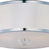 The 15.75" x 7.5" Metro 3-Light Semi-Flush Mount is made of heavy gauge metal tubing with a polished chrome finish bent in a subtle curve until it meets a beveled crystal support. The gorgeous classic design of the frame meets with modern drum shades of white fabric. And by using typical incandescent bulbs, this Semi-Flush Mount produced a warm ambience common in farmhouse style interiors. The combination of traditional steel details and crystals with modern shades is great for a transitional rooms.