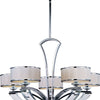 The 34" x 24" Metro 5-Light Single-Tier Chandelier is made of heavy gauge steel tubing with a polished chrome finish bent in a subtle curve until it meets a beveled crystal support. The simply traditional style of the frame balances with modern drum shades of white fabric. And by using powerful Xenon bulbs, this Single-Tier Chandelier creates a cozy ambience common in cottage style spaces. Of course, the balance of classic metal details and crystals with modern shades is perfect for a transitional aesthetics.