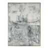 Miffed Wall Art is a textured abstract painting featuring crackled layers of grey in varying hues, evoking a muted seascape in the fog. A black frame with gold trim completes the look.Specs/Dimensions: