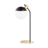 Miranda is a master of mod, serving up high contrast and perfect form in her delightfully polished silhouette. A soft black frame and globe cap are the constant, complemented by either aged brass or polished nickel. Available as a wall sconce, flush mount, chandelier, and table lamp.Specs/Dimensions: