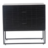 A slick black look. The Atelier nightstand features two sliding drawers with a textured detailing. A cool iron frame supports this minimal stand. The ideal stylish spot for a complementary lamp, candle, or cup of tea.