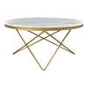 A glam white table top meets an intricate gold-coated base for this modern and attractive coffee table.Product Description: