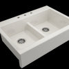 From the BOCCHI Nuova collection, this double-basin kitchen sink comes in Biscuit. Made of Fireclay, this Farmhouse Apron Front sink measures 34" x 24" x 10".