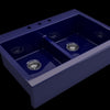 From the BOCCHI Nuova collection, this double-basin kitchen sink comes in Sapphire Blue. Made of Fireclay, this Farmhouse Apron Front sink measures 34" x 24" x 10".