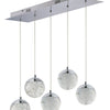This 7" x 6" Orb II Multi-Light Pendant has an adjustable hanging height of 6" - 128". During the molten glass making process, bubble powder is introduced to create bubbles in the glass, giving the 5-light pendant a carbonated look. Six integrated LED lights provide long-lasting light. With a damp safety rating, this fixture is safe for high-humidity locations like bathrooms or any other space inside your home.