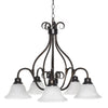 This 26.75" x 21" Pacific Down Light Chandelier is crafted durably with Steel materials. The light fixture uses 5 E26 Medium Incandescent light bulbs. With a dry safety rating, this light fixture would go great in a kitchen or other low-humidity living areas in your home.