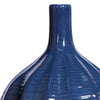 The Phillip Vase is a tall, rounded earthenware vessel featuring a ridged surface detail and deep indigo glase. The body of the vase is tall and rounded with a narrow neck and mouth opening.Specs/Dimensions: