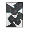 Pierce Abstract Wall Art is a bold geometric painting featuring heavily textured solid black shapes with drop shadows in green and yellow. A simple black frame completes the look.Specs/Dimensions: