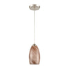 The Planetario mini pendant exudes the softness of nature with a swirling light brown glass and Satin Nickel hardware.