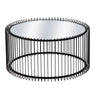 Bedside or sofa side, whichever side you're thinking needs a place to rest your daily items, let it be this nifty iron-cage coffee table. Coiled, contemporary, and sprung with style, this dynamic side table features a mirrored glass table top and sturdy, black iron construction that will last for years to come. Easily cleaned and suitable for any modern home setting – try pairing it up with the Pool accent table to complete the look.