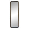 Elegant in it's simplicity, this tall mirror features a sleek black rim. Rustic, industrial design for your living area.