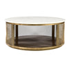 The Solea Coffee Table brings unique modern luxe appeal to a living room or hallway. The base of this piece is made from an iron frame with a mesh surround in a golden powder finish, providing maximum impact without encroaching on the sense of space and light in a room. The Solea features a round, white marble table top, adding to its modern glam appeal.Specs/Dimensions: