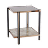 Add a touch of glamour to any room with the Thornsett End Table with Mirrored Top from Vevano. Boasting an elegant design, this end table features a sleek mirrored top and sturdy metal legs for a modern look. Perfect for any living room, den, or bedroom, it provides plenty of surface space for displaying books or photos. Constructed out of durable materials, this end table will be a part of your home for years to come.Specs/Dimensions: