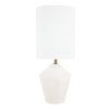 Ashburn is perfectly imperfect. A smooth shape with a hand-molded feel is made of white concrete allowing for air bubbles to come through and making each piece unique. This sturdy, stylish table lamp is available in both a 23-inch version with a taller, slender white linen drum shade and a 15.25-inch option with a shorter, wider shade.Specs/Dimensions: