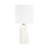 Reminiscent of a city skyline, Leland is a series of rectangular shapes of varying heights stretching towards a white linen drum shade. The White Concrete base allows for individual air pockets to come through giving this table lamp a unique natural feel. The all-white base and shade adds to the fixture's overall clean, polished look.Specs/Dimensions: