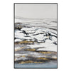 Perfect for adding a sense of motion and texture to a modern or coastal style space, Tumult is an abstract waterscape that displays churning blues, grays and whites and is highlighted with gold metallic flashes. This design is finished by hand and comes presented in a black floating frame.Specs/Dimensions: