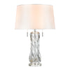 A concept-current design space demands high quality, neutral-themed building blocks enhanced with a regular infusion of exciting color. Our sophisticated Vergato Table Lamp showcases a soft spiral of sparkling clear hand-blown glass infused with a gorgeous Juiced Teale tincture. A genuine crystal base, elegant twin-pull chains, and a luxuriant hardback shade complete the design.