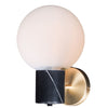 This 7.75" x 11.5" Vesper Wall Sconce is crafted durably with Steel, Marble, and Opal Glass materials. The light fixture uses 1 E12 Candelabra Incandescent light bulbs, and features a Satin White glass shade. With a dry safety rating, this light fixture would go great in a hallway, kitchen, or other low-humidity living areas in your home.