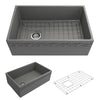 From the BOCCHI Vigneto collection, this single-basin kitchen sink comes in Matte Gray. Made of Fireclay, this Farmhouse Apron Front sink measures 30" x 19" x 10".