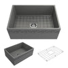 From the BOCCHI Vigneto collection, this single-basin kitchen sink comes in Matte Gray. Made of Fireclay, this Farmhouse Apron Front sink measures 27" x 19" x 10".