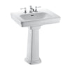 Traditionally elegant with distinctive lines, this pedestal lavatory is bold in design. Features spacious basin, large backsplash and rear overflow. Universal height.