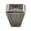 This stylish Knob is made of Zinc. The Tapered Cube shape is a popular and accessible design choice. A Transitional design complements any room style. The base size is 1.13" in width and it projects 1.13". This Knob is easy to install and very durable.