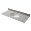 This 49" x 22" vanity countertop features a polished, pre-sealed granite finish and a 18" drop-in oval sink.